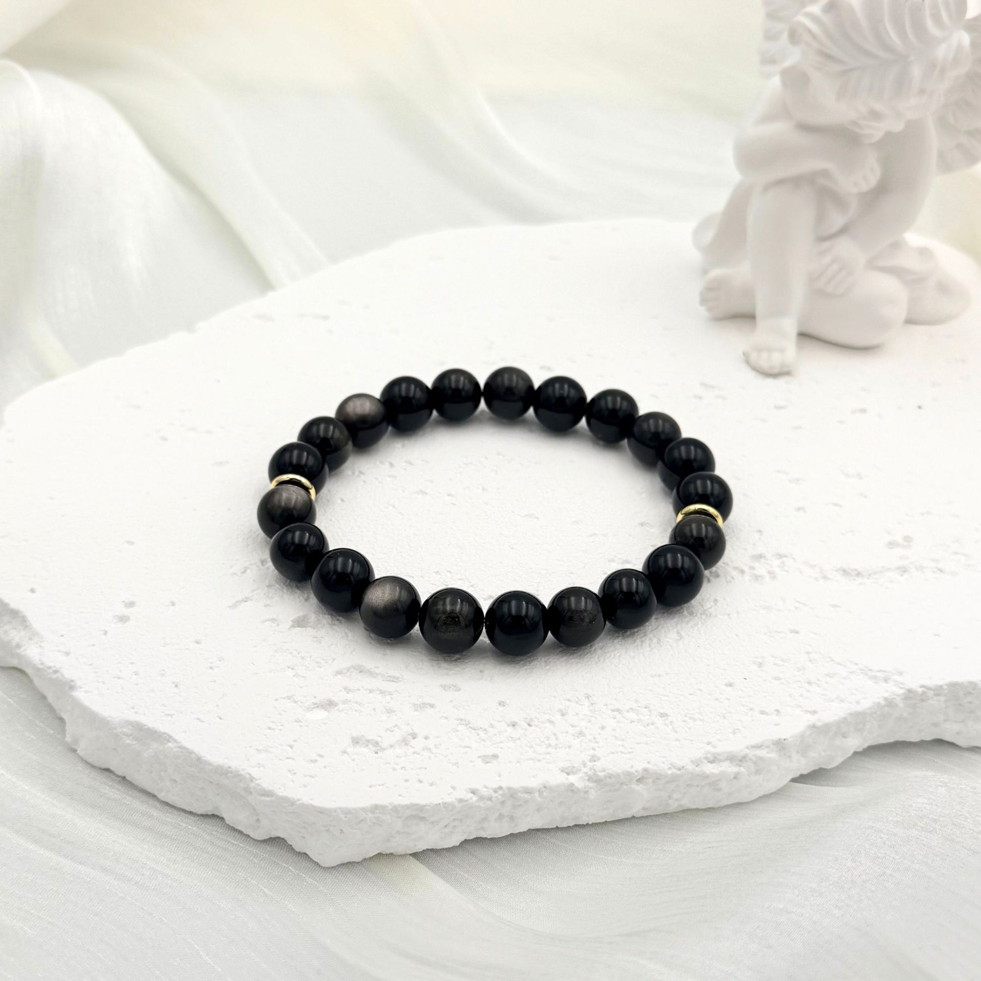 Beads: Silver Obsidian (7A), Gold Obsidian (7A), Black Obsidian (7A)
